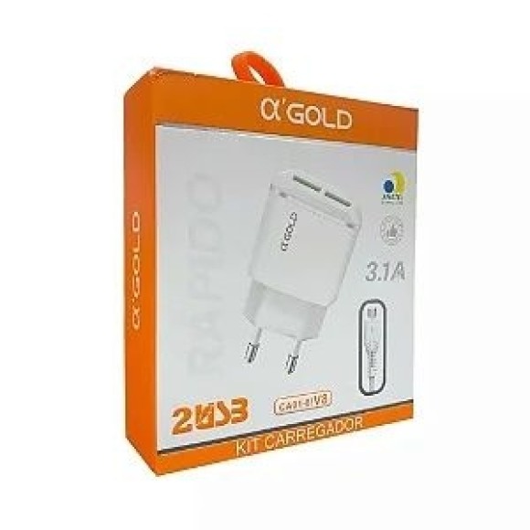 CARREGADOR V8 AGOLD CA01-8 2 USB 3.1A