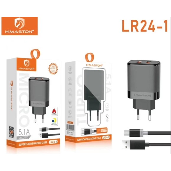 CARREGADOR V8 2USB 5.1A LR24-1 (R#)
