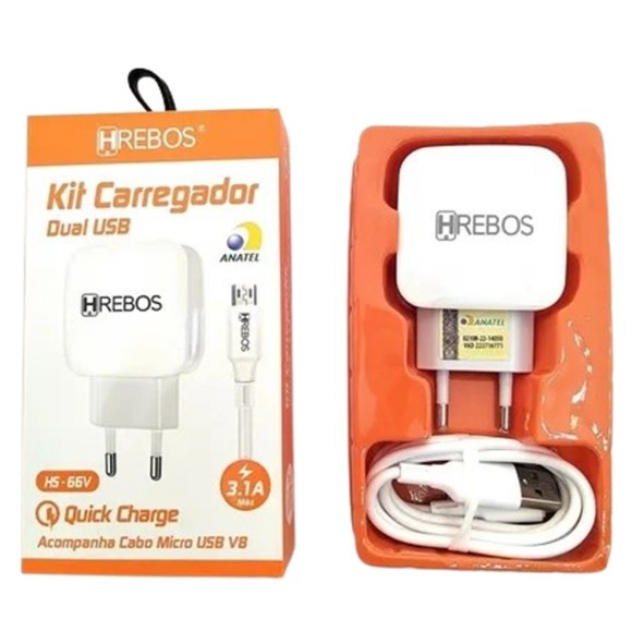 CARREGADOR TURBO 2USB V8 HS-66V (R#)