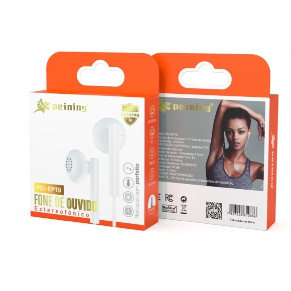 Descrição Técnica do Fone de Ouvido PEI-EP19 (Branco)