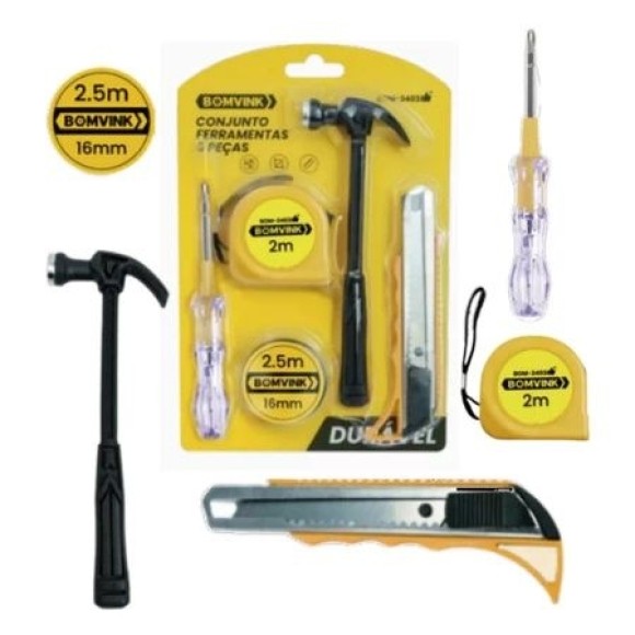O Kit de Ferramentas 5 Peças BOM-3403 da Bomvink é a escolha ideal para quem busca praticidade e eficiência em reparos domésticos, manutenções e pequenos projetos. Composto por itens essenciais, esse kit oferece versatilidade e durabilidade, sendo perfeito para uso profissional ou doméstico.