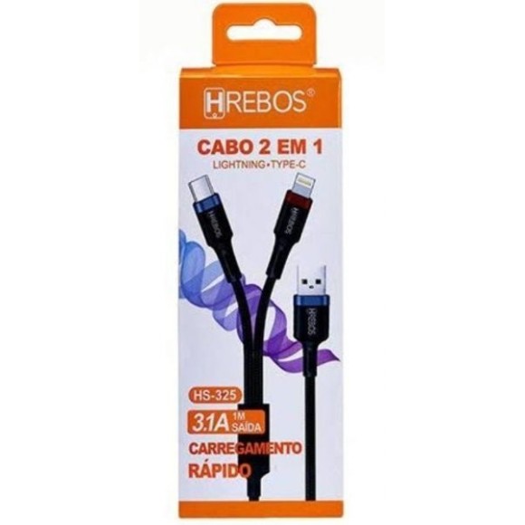 CABO 2 EM 1 PARA IOS/TIPO C HS-325 (R#)